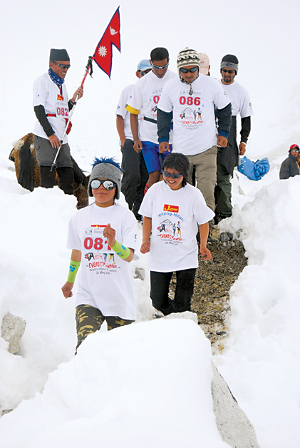 Today a number of marathons are held all over the world, and even a Lhasa marathon is planned to be held in 2010. Three marathons are held with the magic word ‘Everest’ in their title. The ‘Mount Everest Challenge Marathon’ is held in Darjeeling, India, in November. And two are held in Nepal’s Khumbu region, the ‘Tenzing Hillary Everest Marathon’ in May and the ‘Everest Marathon’ in November-December. The Everest marathon is held every alternate year and starts from Gorak Shep while the Tenzing Hillary Marathon starts from Everest Base Camp (EBC). The Tenzing Hillary Marathon commemorates the first ascent of Mount Everest by Sherpa Tenzing and Sir Edmund Hillary on May 29, 1953. The Tenzing Hillary Marathon is the world’s highest marathon; starting at around 5,360 m it is higher than the highest peaks on many continents.