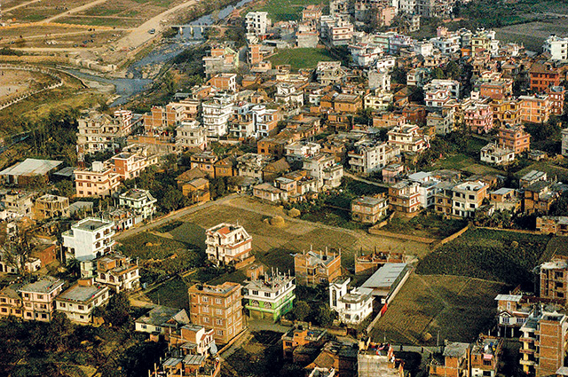 Furtively, I wiped the window with a tissue; not a smudge must impede my vision. The Big Show is outside. Alerted to choose a seat on the right of the plane so I could see the Himalayas, I was ready with my camera. Multiple snow-capped peaks posed as candidates for Everest. I wasn’t sure which was the real thing, but I was confident to have caught a few “prime suspects.” I thought the show was over. As I was putting my camera away, I suddenly spied the steep steppes of spectacular green and yellow-green farm fields east of the city. A Grand Finale began. In rapid-fire frames I captured the menagerie of slender three-storied apartment buildings rising like stalagmites from the plains of the Kathmandu valley. How could I not think of my native Pittsburgh, whose hilly topography disperses the clapboard and brick houses in a chaos of colors and shapes?