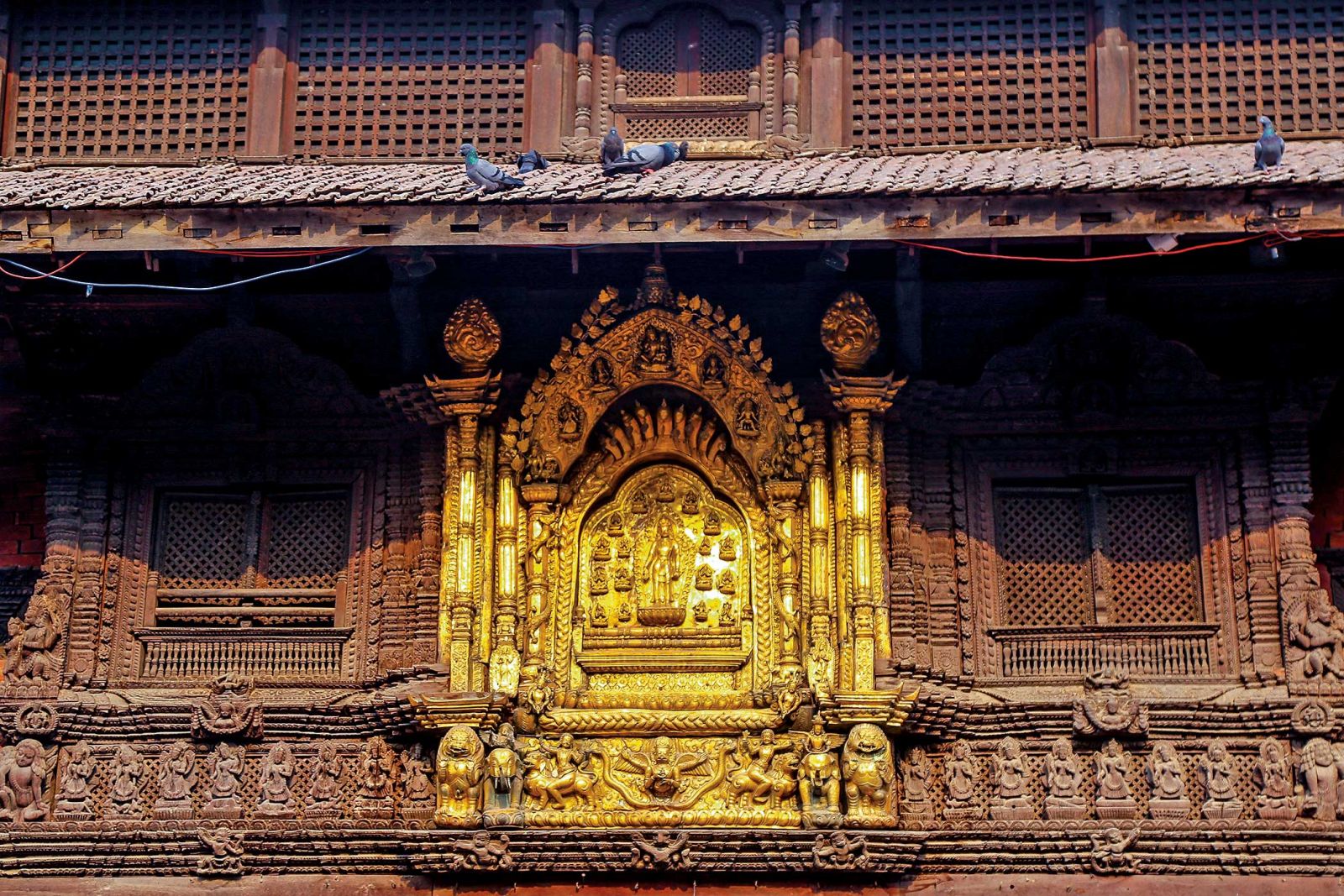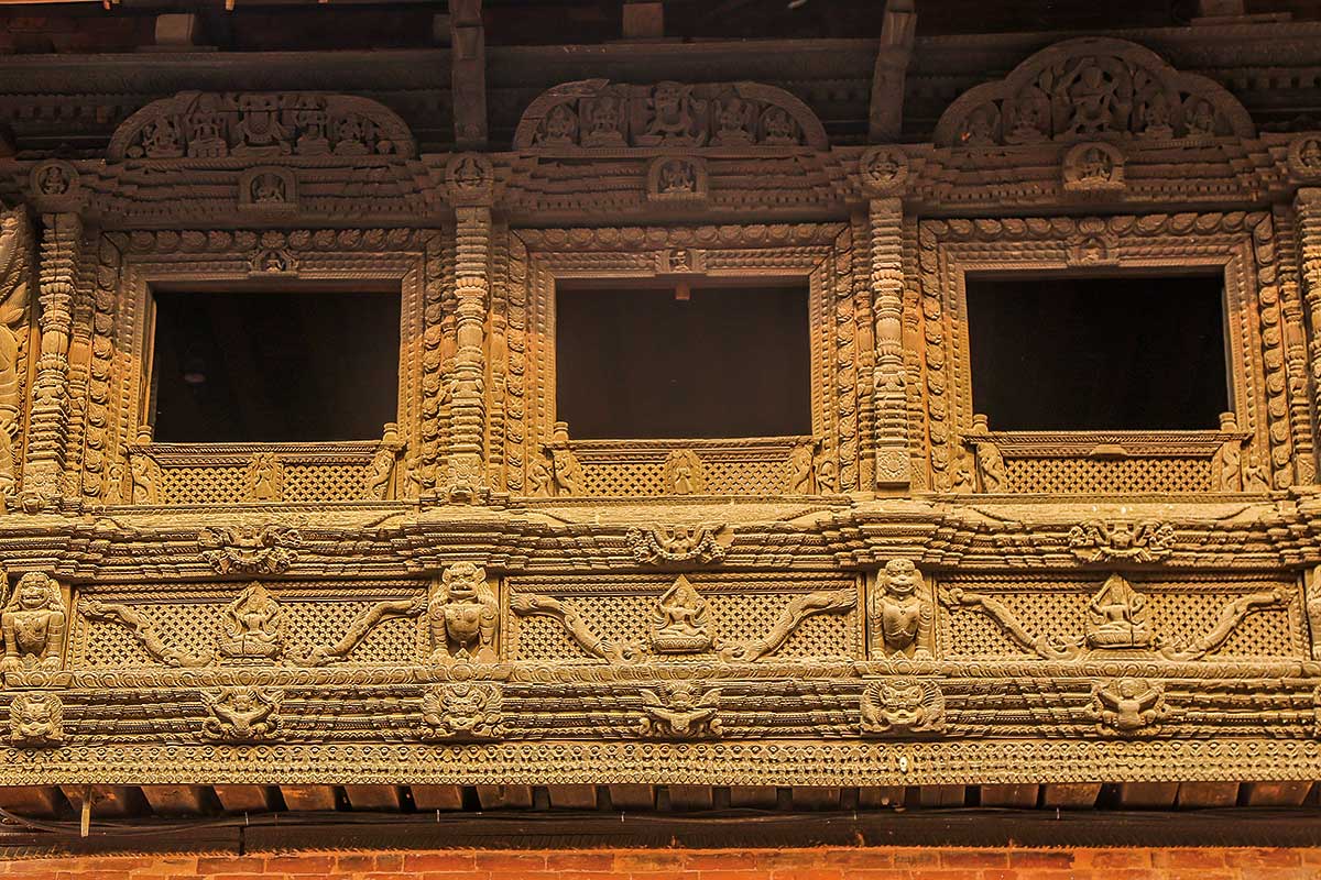 There are many different types of wooden windows found in in traditional houses, palaces and shrines, each with their function and purposes. One is the classic Sanjhyā; generally a three-part window in the middle of the building. Another window type is the Tikijhyā, a second floor window that consists of a wooden grid, letting in fresh air and light but not the curious passing gaze! Others are the Gājhyā and Pāsukhā Jhyā, the latter, usually located in monasteries, has five sections that stand for the Pancha Buddha (Five Buddhas). Each window that is made serves a particular purpose. Locals also say that these windows were created as a way for women to communicate with the outside world at a time when they were mostly confined to their houses.