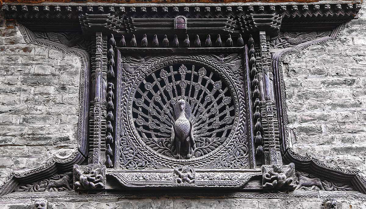 Traditional windows are found all over the valley but the most famous and monumental of them all is known as Desay Madhu Jhyā, located in the Basantapur area of Kathmandu, which means “window without equal.” This wooden carved masterpiece is without doubt a national treasure, a fantastic work of art. When seen, it looks like a three dimensional piece, similar to the shutter of a camera. It is an iconic functional artwork that defines the craftsmanship of Nepalese architecture. Another amazing example is the Mhaykhā Jhyā design, which depicts a fan-tailed peacock; the most prominent example of this can be seen in Bhaktapur. This piece with its detailed and complex design is beautiful. The thought process that it took to create this and the inspiration beaconing from this is fundamental in terms of hammering down our place in human history. Each akhijhyal is different, in both design and construction, depending on the artisan and the origin.