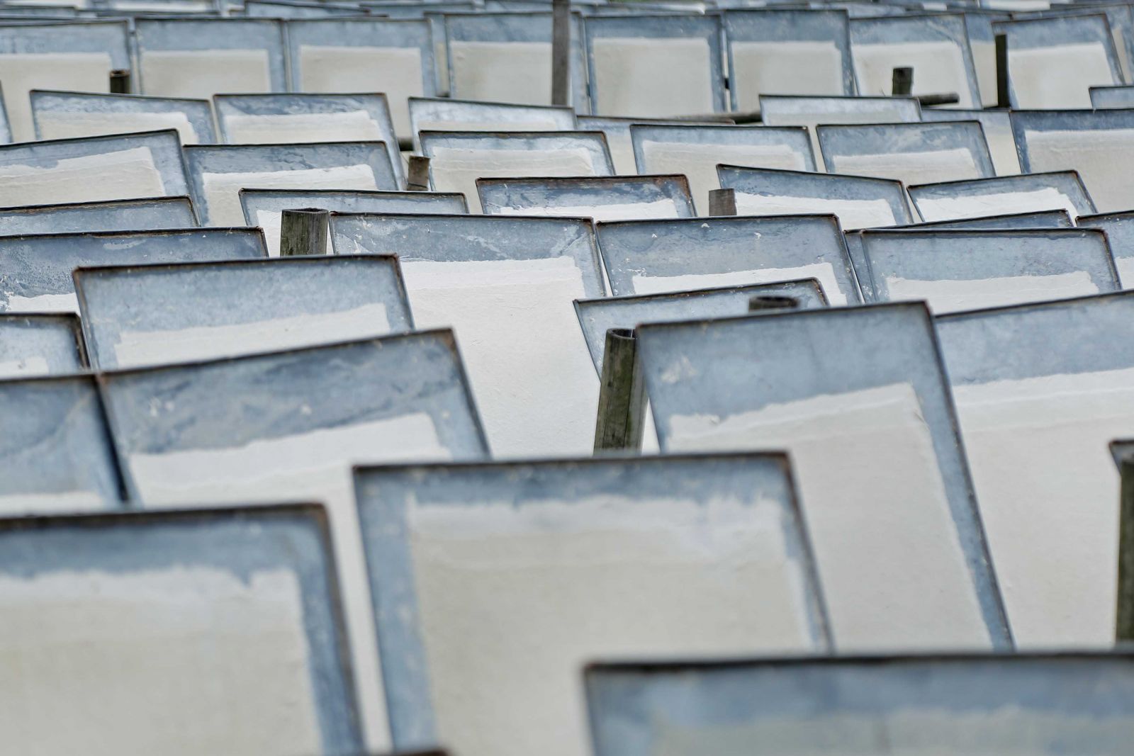In the production assembly line, papers are made into the same shape with sharp edges while the mark of nature remains on the sun-kissed side, the more naturally formed side of lokta paper.