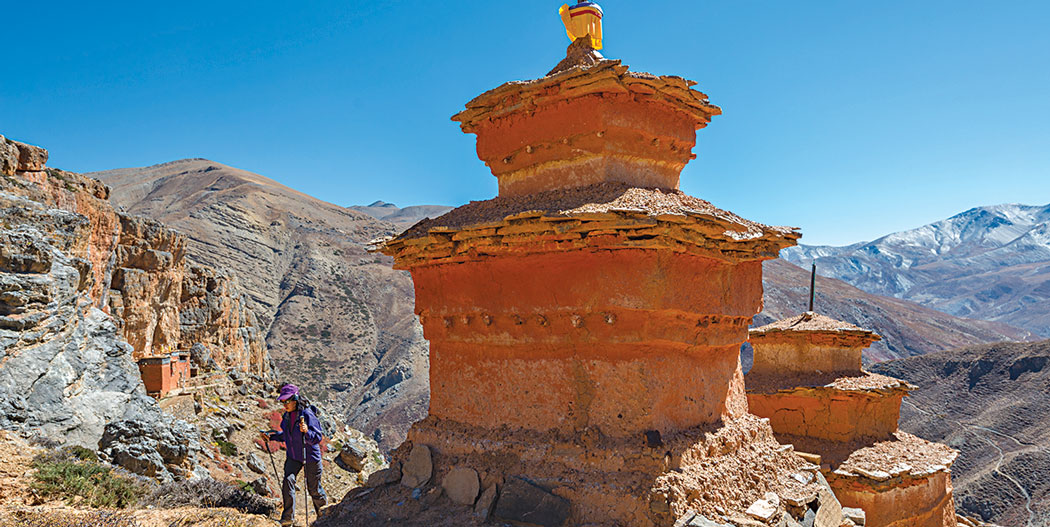 Its diverse terrain and rich culture makes Dolpo an ideal and interesting location to spend the monsoon. Shrouded in the great Himalayas, it’s what we call a ‘rain shadow’ area (where the land experiences little to no rain). While the rain can be very beneficial for farmers in the lower regions, bringing a flourish to their agriculture, it is not the same higher up. If indeed it does begin rain, you can look forward to clear blue skies and the smell of the crisp outdoors by the end of it. The recommended months to visit would be between June and August; during this time, there are fewer chances of getting altitude sickness, as the temperature is warmer. The low accommodation rates make it easier to find a place to stay if you are trekking, or simply just relaxing. You might ask yourself, ‘why go to a rain shadowed area?’ Well, the answer is simple, to escape being cooped up inside, while the rain falls in torrents around you. There are loads to do in Dolpo, and so much to see, one of the activities being trekking. It has become an increasingly popular pass-time for those who wish to experience things from a wider and different perspective.