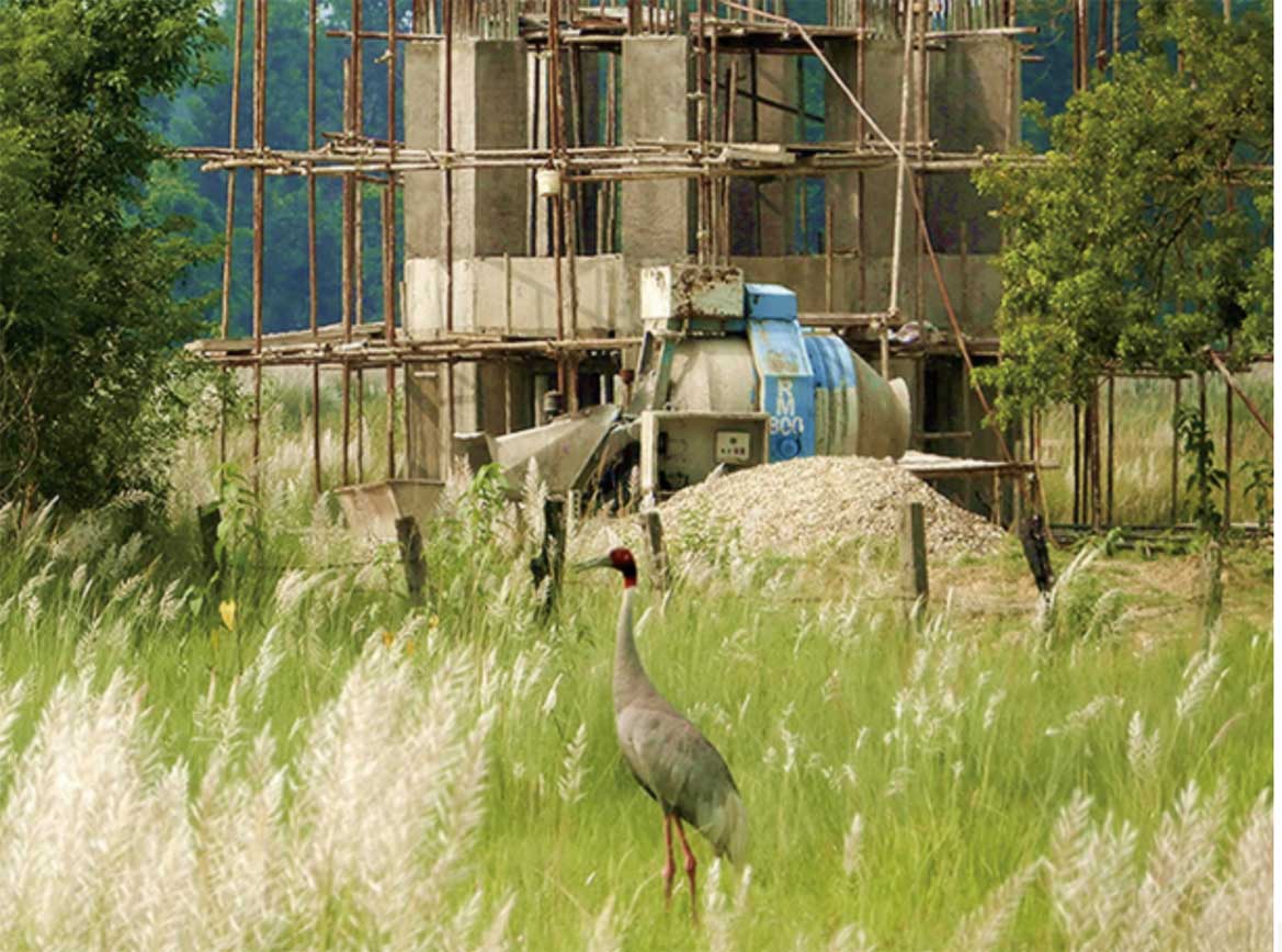Lumbini has a high amount of biodiversity and is a designated Important Bird Area (IBA) of Nepal. One species whose habitat has been particularly strained by development is the Sarus crane, the tallest flying bird in the world.