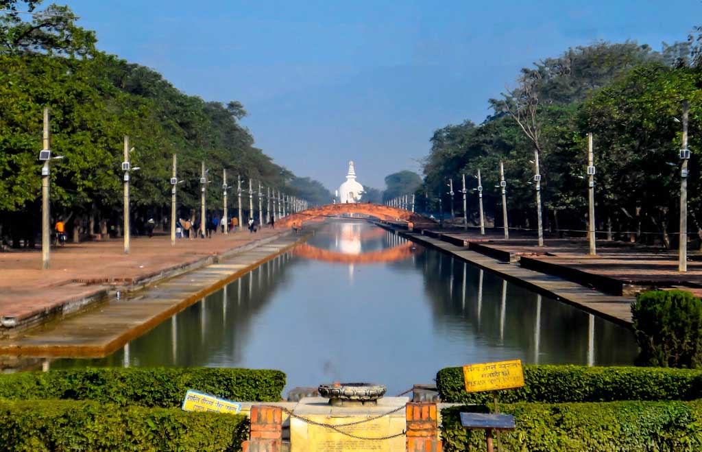 The Lumbini site is split by a canal that dramatically pans between the two main monuments: the Eternal Peace Flame and the Peace Pagoda. Motorboats give tours down the canal, and tuk tuks are also easily available. I cheaply rented a bike for the day, and used it to go beyond the designated site into the surrounding villages. (“Beyond Buddha’s Birthplace”, published by ECS Nepal in July 2018, covers other things to do in this area: http://ecs.com.np/history/beyond-buddhas-birthplace)