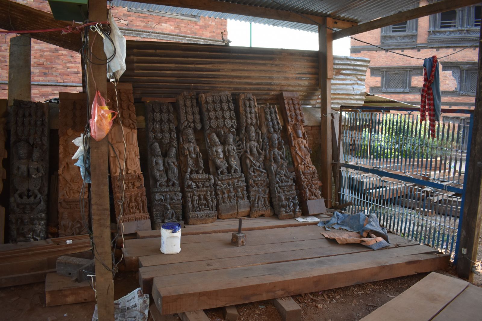 “We are in the middle of history,” the man said to me, almost conspiratorially. He was a stranger—a German tourist judging by his accent—and we were at the back of Nuwakot’s Durbar Square, in an open shed filled with carved wooden struts in various stages of preservation and re-carving. Some were very new, some extremely old, and others a combination of the two. Alongside were woodcarving tools, a tub of glue.