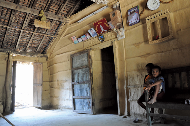 But Bardia is not only about the wilderness and wildlife. A stroll down the main dirt road toward the national park entrance will take you past Tharu homes. (Thakurdwara remains, in essence if not in composition, a Tharu village.) Theirs is an architecture of simplicity and their building material reflects the bountiful world that surrounds them. Old men and women sit braiding ropes or winnowing—chores not too demanding for their age. The adults of the households toil in the fields, working the rich soil that was once jungle floor. Children play with toys fashioned from wood and mud. A Tharu house, from the water pitcher made from dried gourd to the ropes made from elephant grass, is an ode to the jungle’s bounty. But this is achieved not by accumulating objects or extracting too much but by the age-old wisdom of reducing, reusing and recycling.
