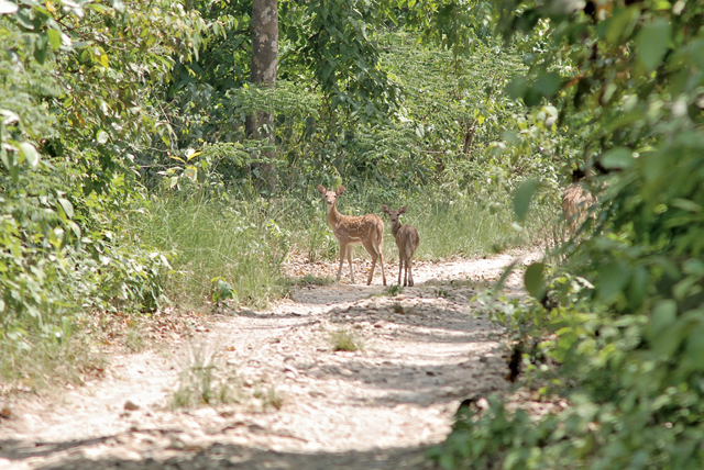 I looked down at the graveled road and thought that it was fitting that our trip into the wilderness began with a sense of being in the middle of nowhere. The manager of the resort we were going to stay in had told me over the phone the day before that their only vehicle had broken down, so we’d have to either walk or catch a ride with someone to the resort. All I could make out in the darkness were the tops of sal trees, which stood on either side of the road, turning the place even darker. I decided it was too dark to begin our walk any time soon; we’d have to wait until dawn to start out for Thakurdwara.