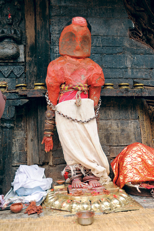 Bandu Dutta Acharya then asked the serpent King Karkotak Maharaj who had previously sneaked inside the stomach of the Yaksha according to their wired plan to impress the Yaksha (who otherwise wouldn’t have let them enter the palace) to come out. Pleased with the medication that was hoaxed, the Yaksha promised to give them anything that they wished for. King Narendra Dev, Bandu Dutta Acharya and the Lalit farmer together reply, “We would want to take your son to Kathmandu Valley.” The three sowers were desperate to get rid of the despair Kathmandu was facing due to the drought Gorakhnatha caused. The prophecy predicted that if Gorakhnatha would meet his teacher Karunamaya, he would free the serpents he sat above and bring rain and rice back to Kathmandu.