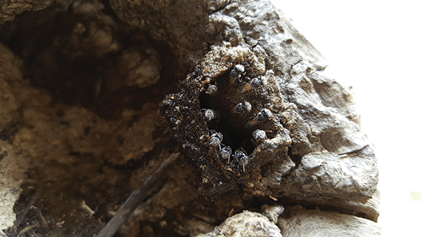 While we were busy documenting the special words of the Kusunda language, I could see a swarm of tiny insects heading to a small hole in a wooden log hung by the side of the house. The small insects, neither honey bees nor houseflies, are called putka and yield a honey-like sweet substance.