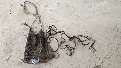 When Uday asked Gyani Maiya about the Kusundas’ hunting and gathering skills, she brought out a tangled bulk of cords. The mesh of cords was a snare to trap jungle fowl and the bag meant for carrying the trapped birds. Made from cords extracted from wild creepers, the snare is called aant and the bag aamji in the Kusunda language. To trap a pheasant, they tie the snare between two trees, hide nearby and make sounds like pheasants by putting cycas leaves between their lips. Following the noises, the birds pass through the trees, where they get trapped in the snare.