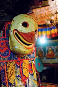 From early morning until late evening the locals are out doing their kora or rounds around the town and gompa, which resonate throughout the day with the haunting sounds of a Mahakal protection ritual. It’s a tantric ritual, one that has gone on every day for centuries, led by the monastery’s monks.