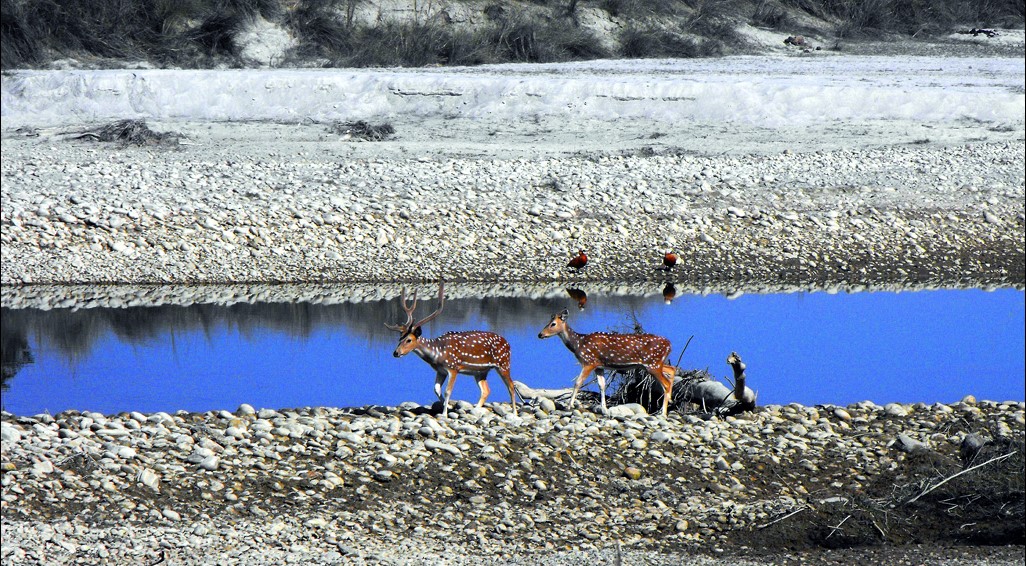 But we climbed into a jeep and set off, stopping along the way to gaze at deer, including several males with spectacular sets of antlers, one of whom walked right into our path, staring us down with confidence. We also saw gharials, and a seemingly endless variety of birds of all sizes and colors. I’m not sure if it was the time of year or the part of the jungle we were in, but the amount of birds, and wildlife in general, that I spotted on this trip far surpassed my previous visits to Chitwan. Electric blue kingfishers, two varieties of hornbills and two of storks, woodpeckers and photogenic pairs of ruddy shelducks, who migrate here from as far as Siberia—these are just some of the birds I added to my list. It helped that the nature guide—like all of the staff I encountered at Temple Tiger—was remarkably knowledgeable and friendly. Ambika Prasad Parajuli answered my repeated questions, not just patiently, but enthusiastically; his love for the area, the wildlife, and his work clearly showing as he did so. The presentation on the park’s flora and fauna he gave one evening was also great.