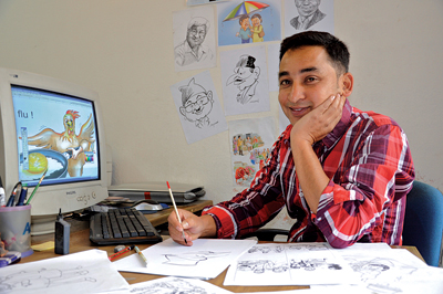As he is now expecting his first child, I ask would he be happy for him or her to become a cartoon artist? Rabin Sayami smiles his satirical smile and says his child would receive every support.
