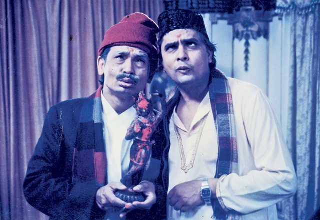 The MaHa duo, comprising of Madan Krishna Shrestha and Hari Bamsha Acharya, both theatre artists before the inception of Nepal Television, paved the way for comedy. While some of their popular television shows like “Pandhra Gathey”, “Bhakundey Bhoot”, “Chiranjivi”, “Dashain”, “Banpaley”, and others brought essential comic themes to Nepal Television, their shows were heavily lined with the undertones of social, political, civic, cultural, and humanitarian messages. Hari Bansha Acharya maintains, “We are entertainers. Our first motif is to provide people with a happy thought by the end of the show. But if we can deliver a social message through the lines we speak and the stories we tell, then why not?”