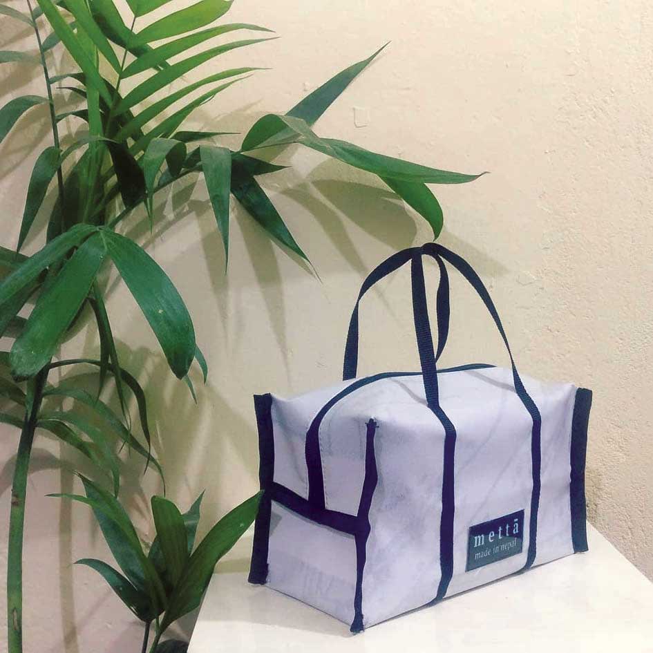 Banners. We see them everywhere in Kathmandu. It’s pretty much a habit for organisers to print flex banners for their upcoming events. But what if there was a way to extend the life of banners beyond just the event they advertise? It was this very question which led Rushka Sthapit to conceive of the idea ‘banners to bags’ in 2012, which as of this year is formally registered as a company under the name ‘Metta ktm.’