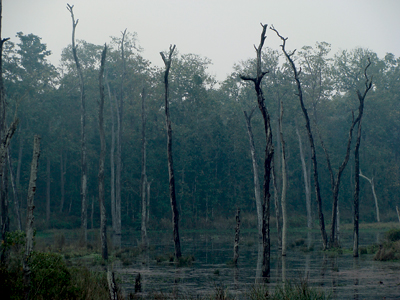 On that morning in early spring, Chitwan’s Beeshazar Tal was like a school playground on a holiday. The wintering birds had left and without them the lake, which is renowned for the diversity of its winter occupants, was a somber expanse of water. In this dearth of life the lake appeared bigger. Because parts of the surrounding forest extended into the lake, creating peninsulas, it was impossible to view the entire lake from one point. We had just begun skirting its south shore when the water started to stir with life. Like boats sailing out to sea, small birds moved towards the center from their hideouts on the shore. Wings flapped and songs rang out.