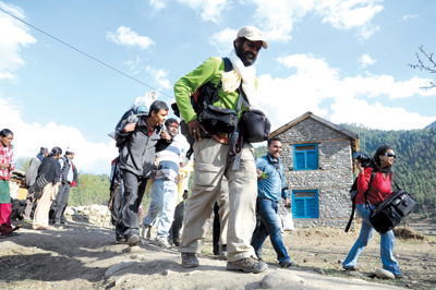 The Himalaya Climate Initiatives’(HCI) website clearly defines the objective of this massive undertaking as “an outreach and publicity event to raise awareness for the effects of climate change on the Himalayan ecosystem and people, to promote pro-poor sustainable tourism as a potential climate adaptation tool and position the Great Himalaya Trail as Nepal’s new sustainable tourism product, contributing both to poverty alleviation and economic and climate resilience of local communities.”