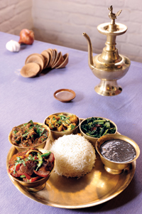 One restaurant that must be mentioned here when talking about ethnic cuisine in the capital is Bhancha Ghar in Kamaladi which has made a fortune serving dal, bhat, tarkari along with saag (spinach), tamatar ko achar (tomato pickle) and khasi ko masu (mutton curry) to hordes of eager tourists for whom a visit to this place is mandatory when in Nepal. The success of Bhancha Ghar has spawned many imitations including the opening of its own branches in various places. Most of the food they serve are good, that is for sure, and just for your information, well priced (for tourists, that is!). Not so good was the ethnic food I had once in a restaurant in Nagarkot, where the establishment had made a pitiful attempt at serving Nepali food the continental way. Imagine having to drink gundruk ko jhol as a starter! That’s just not done, my friend. And herein lies a great lesson for all those serving ethnic cuisine – it’s best served as we eat it at home and yes, it’s best eaten with the hand. Bhancha Ghar’s success can also be attributed to its serving of excellent aila (homemade fiery liquor), the downing of which makes the palate believe everything else is very tasty indeed!