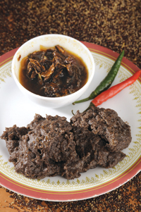 Dal, bhat and tarkari is as wholesome and nourishing a combination as any meal you will find anywhere. Sag and achar provide added nutrients and taste but it is really khasi ko masu that is the clincher. Nepalis just love this tasty curry but unfortunately it has become a delicacy reserved for special occasions with the price of mutton crossing 500 rupees a kilo and putting it beyond the reach of many. However, Nepalis being very much a meat loving people, make do with the next best alternative, that is, chicken. It must be mentioned here that the Newars are particularly fond of buffalo meat (locally called buff). Its slang form is ‘thulo khasi ko masu’ which means ‘meat of the bigger goat’. This is apparently so because in days gone by it wasn’t really the done thing to go for buff meat, the implications being that you couldn’t afford to eat the more respectable goat meat!