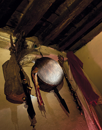The second way in which the bombo provides meaning is by way of his ambiguous subject position. The mode of thinking in which the idea that everything in the world has and is defined by its equal opposite (or binary opposition) is a helpful and well established conceptual framework with which to create order out of the vastly complicated and ever changing flux of reality. The bombo breaks down binary oppositions by transgressing their borders – sane/insane, life/death, material world/spirit world, village/charnel grounds, day/night, sun/moon (both usually carved into the dyangro’s ‘torme’ or drum handle) health/decay, order/chaos and blessing/curse. By means of mantras and love charms, he has the power to cool fire and to inflame an unfeeling heart. He can make those who are sick healthy. He works at night and rests by day. He has the power to wreak havoc but does not do so because he is good. In fact, a bokshi is no different from a bombo gone bad, so even the fundamental opposition of bombo/bokshi is precariously balanced in the bombo’s worldview. But, by defying these binary oppositions he actually strengthens them in the collective consciousness of the village since he is different from ordinary villagers. Much like the role reversal in a medieval European carnival, whereby the village idiot was crowned king for a day and servants ordered their masters around, the bombo serves to reinforce the ideology of the status quo by embodying its equal opposite.