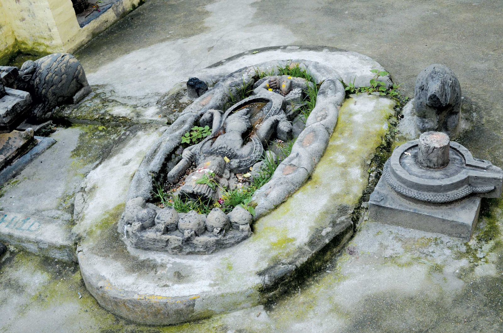 Passing by the Akhadas, there is a tall white architecture surrounded by six small temples. It is the Jung Hiranya Hem Narayan temple. Visually, the pure white and round roof are grand and divine. It is said that Jung Bahadur built it for penance after the Kot Massacre in 1846, when a lot of officials died. Sadly, it was destroyed in the 2015 earthquake but it has just been renovated. Pigeons were still flying around the building, and several monkeys were chasing each other, shuttling through the high beams.