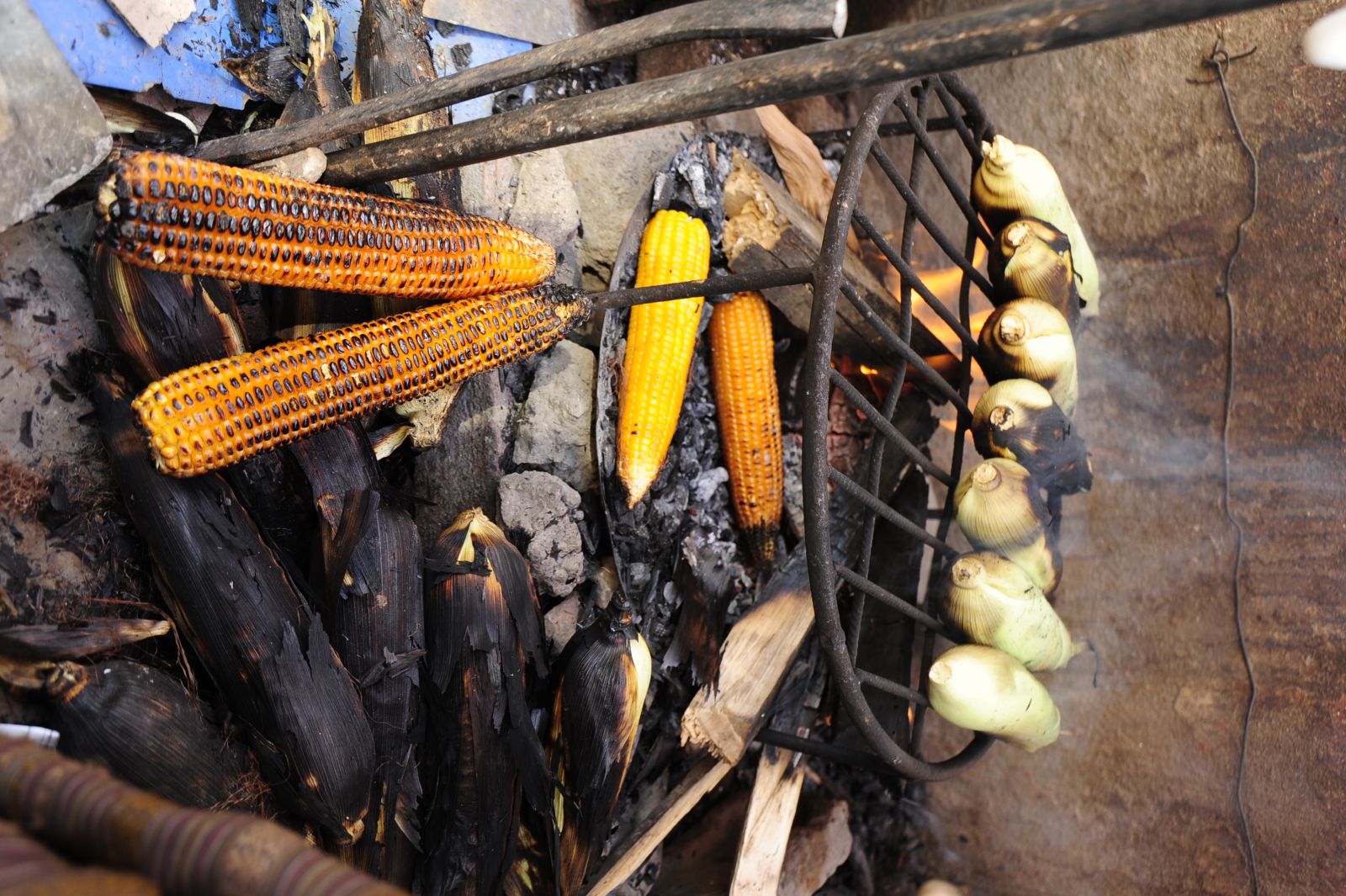 Walking on the street, it’s common to see women baking corn. The closer you come to the place, the stronger scent of burnt corn you can catch. The woman places them directly over heat on medium-hot grill in the charcoal stove, rotating when dark spots appear and the ears will be speckled with char spots; the whole process takes only 5-10 minutes. The costs are affordable, with around Rs.30 to get one. Having a bite on the grilled corn, it tastes chewy and palatable, which makes it a good snack when people trek or have a trip.