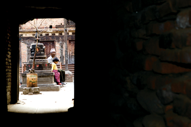 Every day thousands of us, travelers and expats and Nepalis alike, walk in oblivious haste past whole sections of the city. We see them and don’t see them. We pass a shadowed doorway, unmarked and head-bangingly low, but would never enter because it seems to go into someone’s home. Further down we pass another doorway, and then another, which offer occasional glimpses of murky passageways and perhaps a dusty inner courtyard. But there is nothing inside on a tourist map, and it’s not the location of the shop we’re heading for, and so we walk busily on.