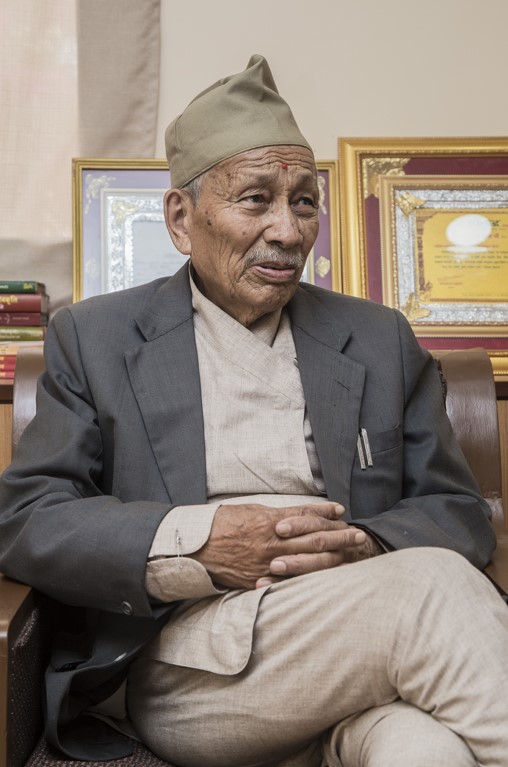 He was dressed in a long-tailed cotton shirt and a suruwal. He seemed quite surprised to see me; I had met him a month or so ago for a short piece about his association with a foundation that was bringing out a commemorative issue to mark its tenth year of establishment, and I think I must have appeared a bit familiar to him. Actually, I had also done a feature on him in 2011 for this very same publication, but I well understood that he is a man who gets interviewed at least a couple of times a month by some media outlet or the other, and keeping his advanced age in mind, I doubted that he remembered me. So, I reintroduced myself and explained to him about our upcoming 200th issue and how apt it would be to feature him in this issue.