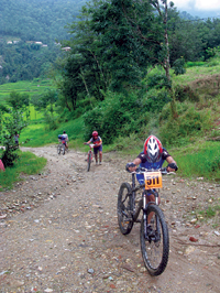 The first MTB Madness Mountain Bike Championship cross-country race was organized by Kathmandu Bike Station. A recently opened mountain bike shop in Pani Pokhari, it is run by the enterprising duo of Prayas Tamang and Buddha Lama. Slated for August 28, 2010, the race was divided into six categories: Juniors (under 18 years), Women (open), Elite (19-30 yrs.), Veterans (30-40), Masters (40-50) and Grand Masters (above 50 yrs).