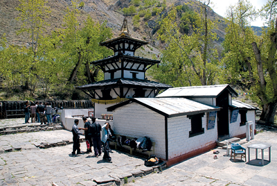 Situated just below the complex of Muktinath is the dharamshala of ‘Rani Pauwa’ – ‘Queen’s Resting Place’, now an expanded village of lodges and hotels for tourists. Its main feature is an old building that was once the quarters of royalty when they came to bathe in the sacred waters of Muktinath that provides resting space for pilgrims enduring the hard trip to Muktinath from all over Nepal and India.