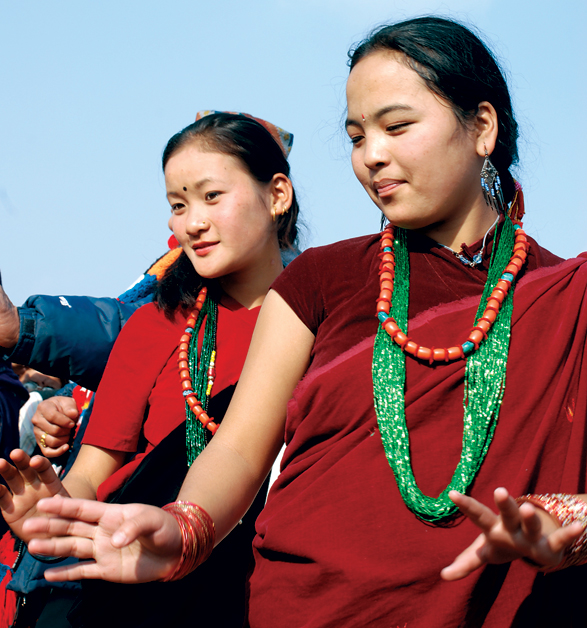 Tamu, as the Gurungs call themselves, is one of the many ethnic groups of Nepal both in terms of their geographical distribution and their cultural makeup. The group primarily occupies the western regions of Nepal. They are particularly numerous in the districts of Gorkha, Lamjung, Kaski, Tanahu, Parbat, Syangja and Manang, all within the shadow of the Annapurna mountain range. Although located within close proximity, there are many social and cultural distinctions among the Gurungs. The Ghodane clan, for example, makes up a large proportion of Gurungs living in Parbat district. Their rituals and traditions portray considerable social distinction and generosity. In their marriage rituals, the Ghodane entertain not one but three different approaches.