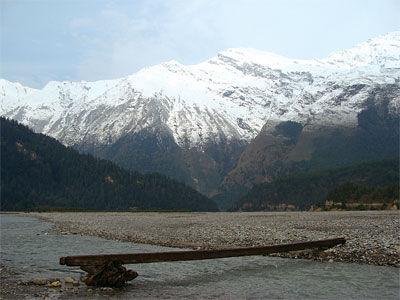 It would have passed for anything but a bridge. But that is what it was. And it was the quickest way to escape the sheets of rain that had combined with the infamous winds of Mustang to drench, chill, and slow us. The bridge in question was nothing more than wooden planks nailed end to end for nearly 200 meters. It was bizarre enough even to cast doubts in the mind of my companion, a true veteran of treks in Mustang.