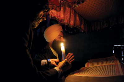 Each day would involve remembering and praising the divine Guru by chanting, playing music and reading from the Guru Granth Sahib, until the next Purnima on his birthday, November 21. It all started by lighting a traditional oil lamp, held in a simple red ceramic bowl, with handmade cotton wicks. The lamp would be dutifully tended by Guru-ji—illuminating an image of the divine Guru Nanak, night and day for a month.