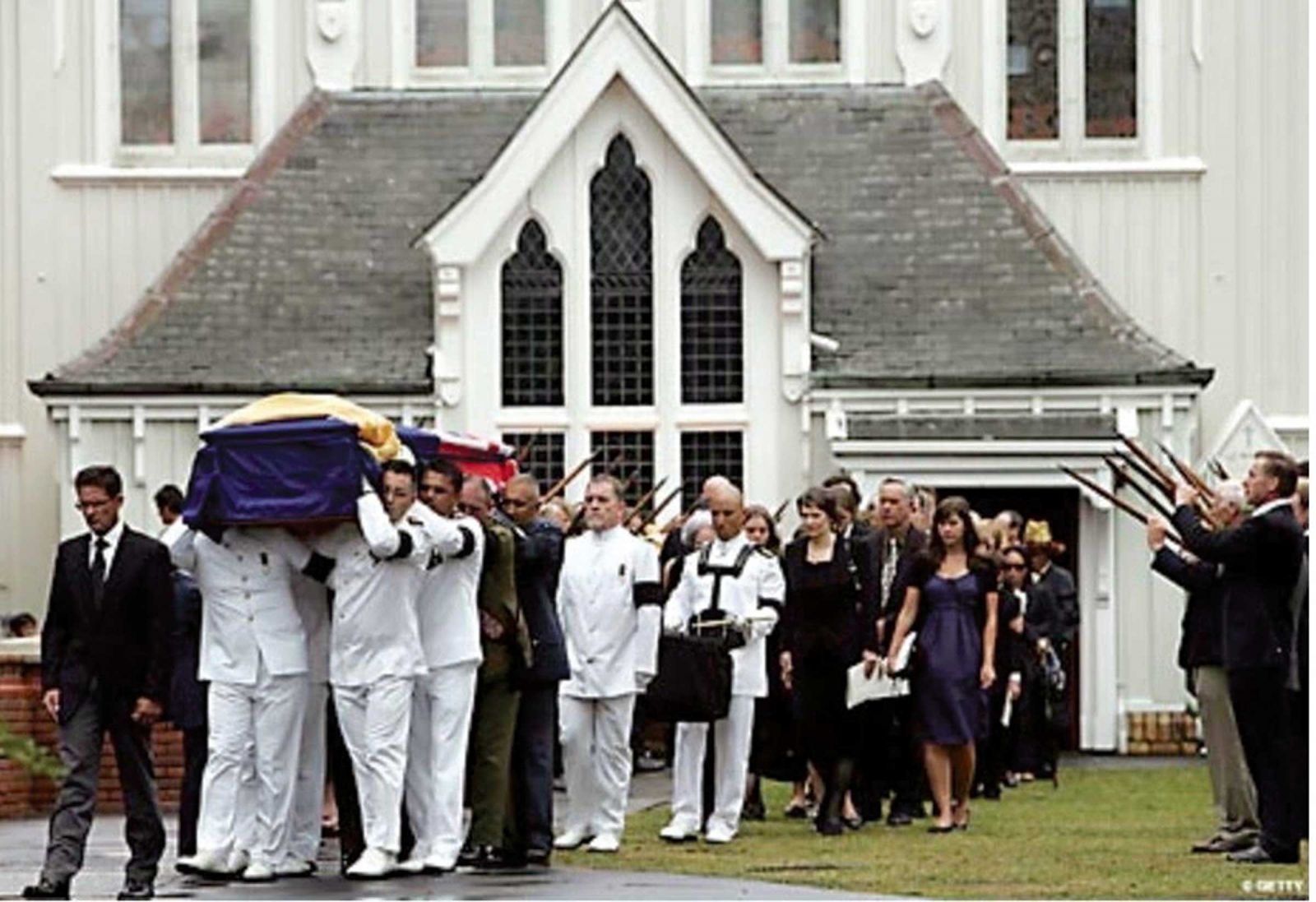Life throughout New Zealand paused as the loss of their national hero was digested. Kiwi mourners waited in line for hours through the night to pay their last respects, his body lying in state with a military guard and medals displayed on navy velvet cushions. The rainy streets of Auckland were silent as Sir Ed was seen off in solemn ceremony, praised with a noisy Maori haka and acclaimed with an alpine sentinel of ice axes.