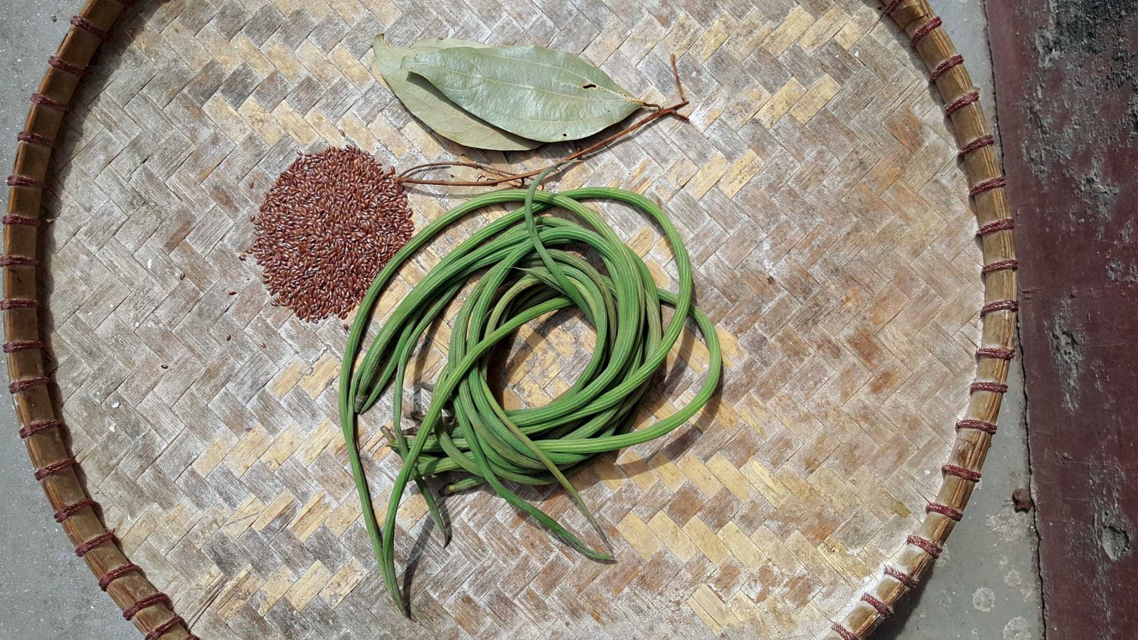 Drumstick, flaxseed and bay leaf make a yummy curry. Just roast the seeds and grind them into powder form.