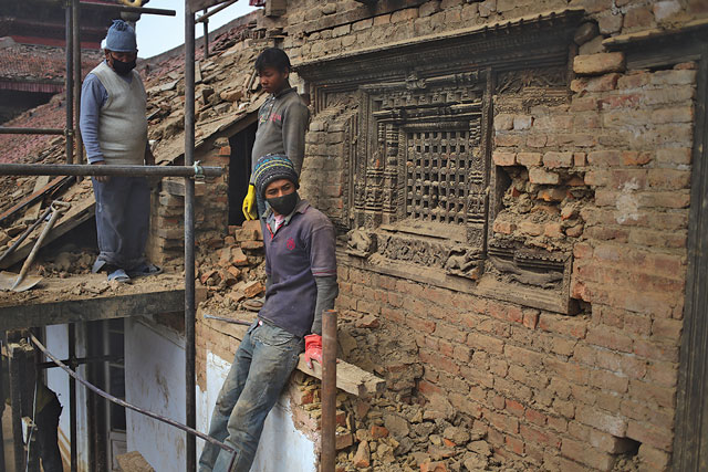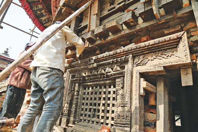 A year after the earthquake, people still walk around Basantapur Durbar Square lost in their private thoughts, thinking about daily errands, the nitty-gritty of their daily lives, and occasionally sparing a glance towards the shattered facade of Hanuman Dhoka Durbar, and to the damaged temples surrounding it. While life moves on at its normal pace outside the square, an army of engineers, craftsmen, woodcarvers, carpenters, art historians, and government officials tirelessly work inside the durbar, restoring Panchamukhi Hanuman Temple, one of the first to be completed, perhaps in the next few months.