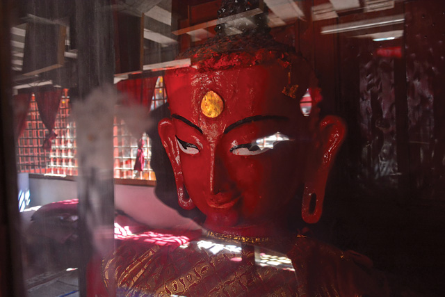 Flanked by two larger courtyards to the north (Agam Chuka) and the south (Tun Chuka), the central monastic courtyard of Tham Bahi has a large icon of Dipankar Buddha on the ground floor of a four?storey building facing east. The caretakers of Tham Bahi are from the Pradhan community. This is unique, as Pradhans are high?class Hindus among the Newa community – it is only in Tham Bahi that they follow Buddhism.
