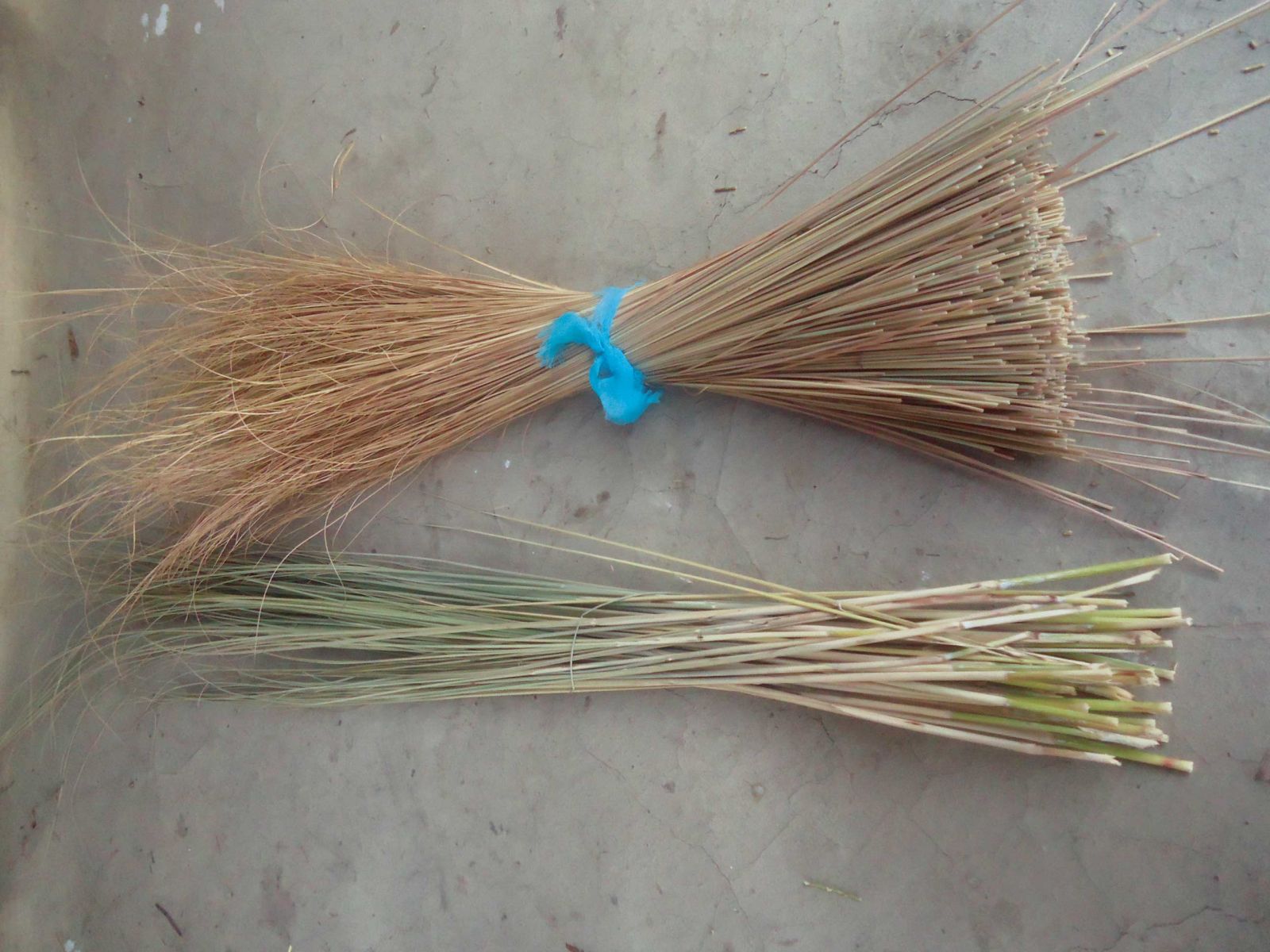 The upper and lower parts of the stem are trimmed. They can be used as the base material to wound the kans stem around. They also collect the kans grass from much earlier than their flowering stage. The stalks are usually hard then and can be used as the base material for the baskets. People also use fistfuls of kans grass from this stage of growth as a broom.