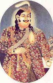 After the ex-Nawab Wajid Ali Shah departed Lucknow in 1857 for his amply pensioned retirement in Calcutta, his wife Begum Hazrat Mahal with their son Birjis Qadr and many followers stayed back in Lucknow to pursue armed resistance against the British. On July 15, the 12-year old boy was pronounced as new Nawab and on August 6, Bahadur Shah Zahar, the last (figurehead) Mughal Emperor of Delhi, issued a vague declaration giving him the more exalted title of King of Oudh. The boy was formally crowned, with his mother as regent. The following year, however, the British dashed their attempt to resurrect the House of Oudh. Upon her defeat as leader of the Lucknow rebellion, Begum Hazrat Mahal turned down a British offer of amnesty and a pension, and defiantly set off toward Nepal seeking sanctuary. After negotiations with Maharaj Jang Bahadur Rana, she was allowed to settle in Nepal for a price?paid for with some of the jewels and heirlooms that the Begum carried with her.