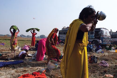 Every five years, Bariyarpur buzzes from dawn till dusk for an entire month. The turnout of devotees is massive. “It crosses the five million mark, out of which almost 75 percent belong to bordering towns in Uttar Pradesh and Bihar in India”, says Manoj Chaudhary, a local. Like a river in spate, a constant stream of people keeps pouring in, pushing and shoving here, there and everywhere with hardly any elbow room. Devotees in hordes are seen camping out in the open with their kitchens set outdoors. Makeshift stalls by the hundreds are squeezed together around the temple grounds occupying every inch of empty space available. From sugary sweets to bangles, puja items to local souvenirs, the shops and eateries do brisk business and the festive atmosphere resonates with blaring loudspeakers playing Hindi bhajans.