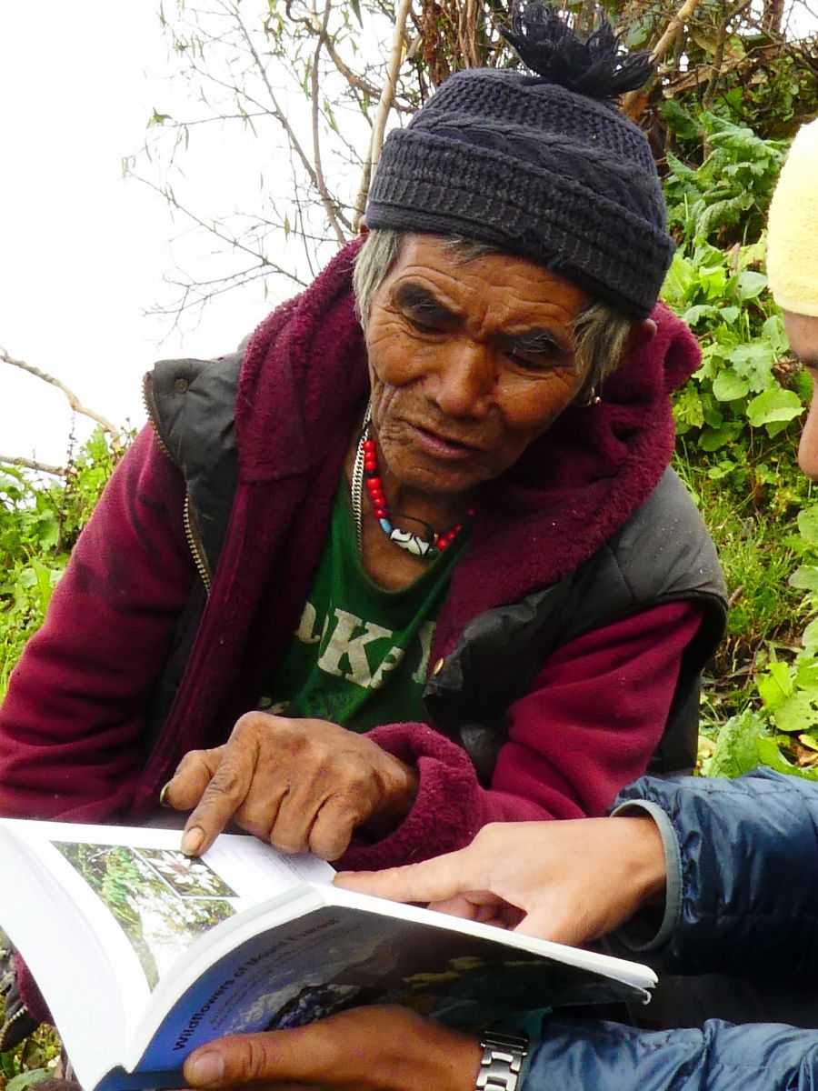 And then there was Thorbu. Contrary to being a pathetic and weakened cripple, he turned out to be the uncle of our sirdar Lakpa Norbu, and is alive and well at 76 and living in lower Ekuwa village. Apparently as resilient and quick-healing as he was strong, Thorbu ended up marrying a young Rai girl and eventually had two sons, one daughter, and now 10 grandchildren. He reports that he did indeed work for “Dr. Thet,” and confirmed that he spent most of his time hunting and catching birds, a skill at which he excelled. He is especially proud of catching a Tawny Fish Owl (Ketupa flavipes) near Tumlingtar airport that he says “made the videshi (foreign) researchers extremely happy,” as apparently the bird was quite rare for that altitude and forest type. And to further clarify Cronin’s fight story a bit, Thorbu claims that he was simply drinking socially and chatting with friends when his neighbor Chhebi, jealous at all the money that he was making when clearly the AVWE’s job was meant for him, attempted to decapitate him with a long, hooked knife locally called a katti. But the potential force of the blow was minimized when the knife caught on a ceiling rafter above. And that yes, the second blow split his ear and sliced a new cavern in his mouth, but immediately after the blow had been dealt he was still able to “pick the son of a bitch up, lift him over my head, and throw him down on to the ground,” before the others jumped in to stop the fight.