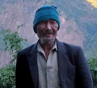 Cronin’s friends Pasang and Chamjii of Lumdumsa village had both passed away some time ago, Pasang at the age of 80 sometime around 1998 and Chamjii in 2008, reportedly at the age of 100. They had had a total of 10 children, five male and five female, and except for one all of them had died either in childbirth, at a fairly young age, or in the case of one brother, disappeared in India. The youngest son, Lakpa Norbu Sherpa, survived, and when he heard that we were looking for him he caught up with us on the trail the next day as we were making our way to the next camp. Now 55 years old, Lakpa Norbu related that he had worked for Cronin and McNeely as both a porter and builder of the two basecamp structures when he was 15 years old. Now the proud father of six daughters and two sons, he has his own house in Lumdumsa, but still uses his father’s old house for storage. Lakpa also confirmed that Chamjii and several of her sisters had all been kangduma, or fortune tellers, but that Chamjii had been the best. She passed her gift on to him on his 40th birthday, and these days he considers himself to be a pretty good fortune teller as well. He remembered that there were 5 or 6 western scientists working full time at Labar, which according to McNeely were himself, Cronin, Howard Emery, Jim and Karen Foster (both botanists), and David McNeely (logistics officer).