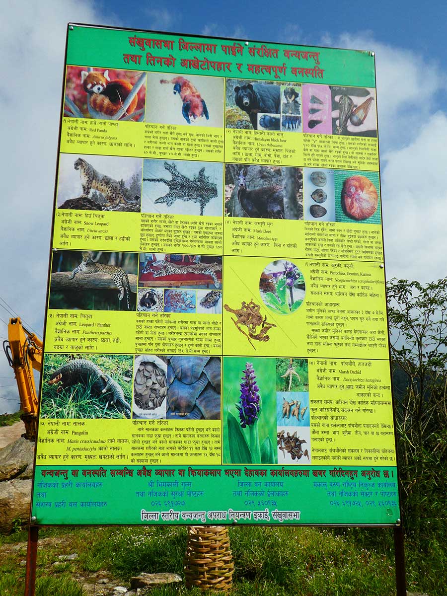 In addition to yetis, wax-eating birds, and the colorful local people encountered, The Arun spends considerable time highlighting Cronin’s concern over the Himalayan environmental “doomsday scenarios” that were popular during that period. Fortunately, the catastrophic levels of deforestation and soil erosion predicted never quite happened, at least not as vividly as imagined in the offices of the United Nations in New York City in the early 1970s. But that’s not to say that the scenario hasn’t been replaced by new threats that are of equal or greater concern. They include such things as the devastation of the Maoist insurgency (1996-2006), the 2015 earthquake that destroyed the Kathmandu Valley and much of the country, the outmigration of thousands of young men annually due to the lack of jobs in the region, and the dramatic increases in poaching of large mammals and rare plants, to name a few. Poaching has become a major problem in the Arun, especially with the new road from Tumlingtar to the border with the Chinese province of Tibet at Kimatanka providing easy transportation, certainly compared to the pre-road days when all travel was done by foot and all loads carried on someone’s back. Today jeeps transport their illegal cargo to the ready markets at the border for musk deer pods, bear gall bladders, bush meat, and the rare and valuable medicinal plants so highly prized by some Chinese. While the park and military are making a concerted and admirable effort to control this unprecedented growth in poaching pressure (Figures 21 and 22), there are just too many ways that poachers can avoid detection in the wilderness regions, and to hide their illegal products in ways that pass regularly over the border to markets in China (e.g., hidden in bundles of the legal and medicinal plant chiraito).