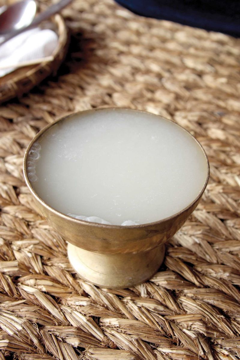 At Lahana, a group of four skilled and experienced Newari women prepare thon with much delight and pleasure. Thon is one of Newari cultures most treasured drinks, so the women at Lahana prepare it with high precision to bring out the optimum taste. The weeklong process of making thon starts with soaking the key ingredient, rice. The women at Lahana do not use just any type of rice; they use a special type of taichin chamal (sticky rice) to make the sweet chhyang. The soaked rice is then steamed in a special type of pot with holes below it. When half cooked, the rice is again washed and then steamed until it’s fully cooked and prepared for further processes.