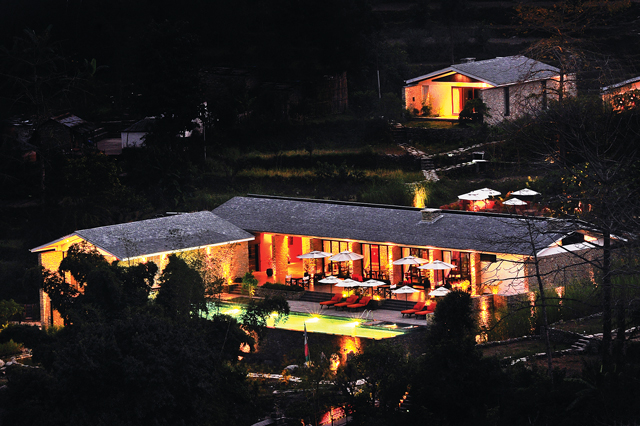 Perched 1,000 feet above the Pokhara valley, with a spectacular Himalayan backdrop, Tiger Mountain Pokhara Lodge welcomes its guests with the essence of tranquility. The lodge is ideal for pre- and post-trek guests, or for those wishing to take day walks exploring local communities, bird-watching, gentle exercise, or just to relax in a typical Nepalese rural setting. Tiger Mountain Pokhara Lodge is a member of Secret Retreats, a select group of some of the world’s most special experiences. Built of hand-cut stone, the cottage rooms provide welcoming, understated seclusion with cool slate and parquet floors, rich Tibetan rugs, handmade wood furniture, and original artwork. Large windows and glass double doors maximize the glorious views of the amazing location. From the lodge gardens you can enjoy the majestic peaks. The hotel has a bar that provides a full range of international and local drinks, and remains open until the last guest retires. From elegant dining to children’s favorites, the kitchen uses fresh, local, organic produce for its range of Nepali and Western meals.