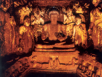 About 107 km from the city of Aurangabad, the rock-cut caves of Ajanta, nestled in apanoramic gorge, in the form of a gigantic horseshoe are amongst the finest examples of some of the earliest Buddhist architecture, cave-paintings and sculptures. Occupied for almost 700 years, the caves of Ajanta seem to have been abandoned abruptly. They remained shrouded in obscurity for over a millennium, until John Smith, a British army officer, accidentally stumbled upon them while on a hunting expedition in 1819. Their isolation contributed to the fine state of preservation in which some of their remarkable fresco paintings and chaityas dedicated to Lord Buddha and viharas, or monasteries, used by Buddhist monks for meditation and the study of Buddhist teachings, remain to this day.