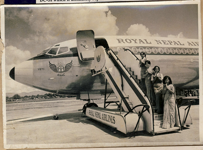 The first scheduled flight for RNAC happened on July 4th of 1958. The plane was a Dakota, legendarily rugged, “a collection of parts flying in loose formation” that transformed commercial as well as military flying all over the world since its inception in 1935. The plane made another flight to Pokhara and Bhairawa the day after and to Biratnagar on the 6th. The nationalization was implemented in October, 1959. Within the next four months the flight route would expand to Patna and Calcutta. US Air would add three more aircrafts and RNAC looked forward to decades of prosperity and growth driven by the motive of expanding air transport for the development of the country. “From the sixties to the nineties was a high growth period for Nepal’s civil aviation. The number of airports grew from four to forty and Tribhuwan airport turned international,” Maheswor Shrestha comments. During the early days Lahures (informal name for Nepali soldiers enrolled in foreign armies; the term lahure refers to Lahore in Pakistan where soldiers were selected from) returning home from service in British and Indian armies filled most of the passenger seats of the Dakotas. “There were hardly any businessmen or such. The lahures came and finished all their earnings at the Thakali bhattis,” Captain Shrestha reminisces. As the routes, fleet and flight schedules expanded, the market boomed, tourists arrived, businessmen traveled and a flying culture gradually took shape.