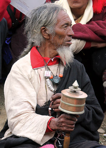 All the while pilgrims performed kora, or circumambulation, around Crystal Mountain, the spiritual powerhouse of Shey, silently reminding everyone of the underlying purpose of the festivities. Muffled voices and footsteps faded in and out of my dreams at all hours of the night as they shuffled through the maze of tents and onto the path leading towards the mountain. The more kora performed, the greater merit built up for the next life. Increasing the dharma for sentient beings: this is what it was all about, this is why everyone was here. As long as time kept ticking, I had no doubt that kora would continue.
