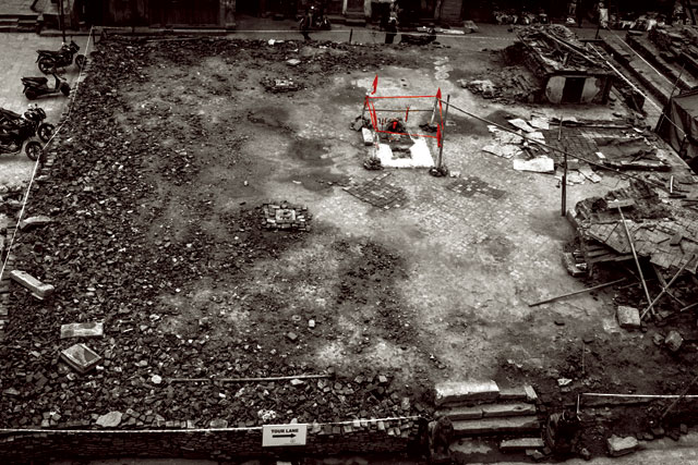 Very little has been said in the media about the demise of Kasthamandap. Two months after the earthquake, the site was still a pile of rubble, with local residents establishing make-shift tents directly on top of the rubble to escape aftershocks. While our hearts weep for our brothers and sisters traumatized by the earthquakes, we must also ask: do we realize they are sitting atop a pile of history that would be the envy of any civilization? Mary Slusser, the Doyenne of Kathmandu culture and history, believes the four enormous wooden columns and the great central platform, at the very least, date back to the original construction of Kasthamandap. Imagine the value of the wood and bricks, even fragments of them, if they are indeed 900 years old. While the larger wooden remains are now stored within the Hanumandhoka Palace complex (unmarked, and mixed-in with other Darbar Square remains), the precious bricks and other remains are completely unaccounted for. They were eventually bulldozed off in a crass manner by cranes and trucks. Where are these ancient relics now? What have we, citizen and keepers of our priceless living culture, done to seek them out? Where are our public servants, officially responsible for the safeguarding of our heritage sites?