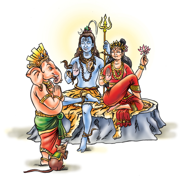 The rat tells Ganesh that for a child his parents are more than a universe, so he should rather go and take three rounds of his parents and get their blessing to become the first among all gods. Following the advice of his pet, he circumambulates his parents thrice and clarifies his stance. Shiva and Parvati, convinced of Ganesh’s wisdom, grant him his wish. In most Hindu temples, therefore, you are likely to see the statue of Ganesh built or installed first before other gods and goddesses.